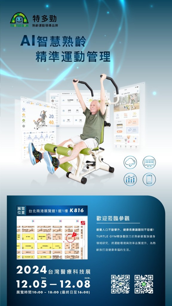 本聯盟與優秀的廠商會員「明根股份有限公司」,將於12月初台北南港展覽二館登場的全台年度最大的健康派對—「2024台灣醫療科技展」大秀超棒的熟齡健身運動產品,趕快看過來~~~