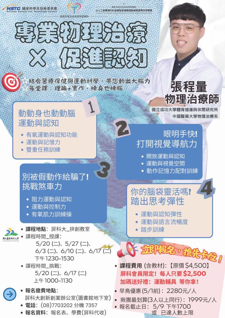 本課程融合最新認知神經科學研究與物理治療實務,透過簡單好上手的動作訓練與實用知識,帶您一步步認識運動如何幫助大腦保持活力。